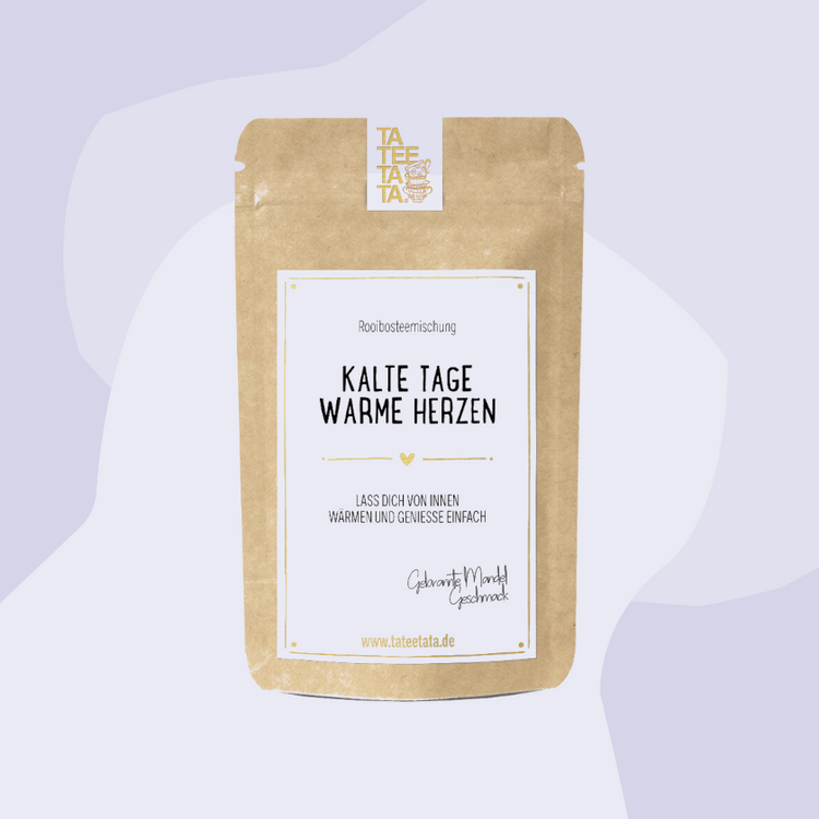 Und wenn es draußen kalt ist, hilft genau dieser Tee hier: Kalte Tage warme Herzen. Schöner könnten wir es auch nicht sagen. Rooibostee mit Gebrannte Mandeln-Geschmack. Mjammi.