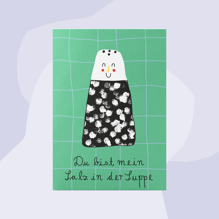 Liebeserklärungen kann Unter Pinien besonders gut. Du bist mein Salz in der Suppe und was wäre eine Suppe schon ohne Salz? Ein fader Haufen Gemüse mit Wasser. Ach, was ist es gut, dass wir das Salz haben und diese Karte.
