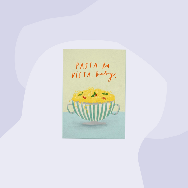 Ein großer Teller Nudeln macht fast genau so glücklich wie diese zauberschöne Postkarte: Pasta la vista, Baby.