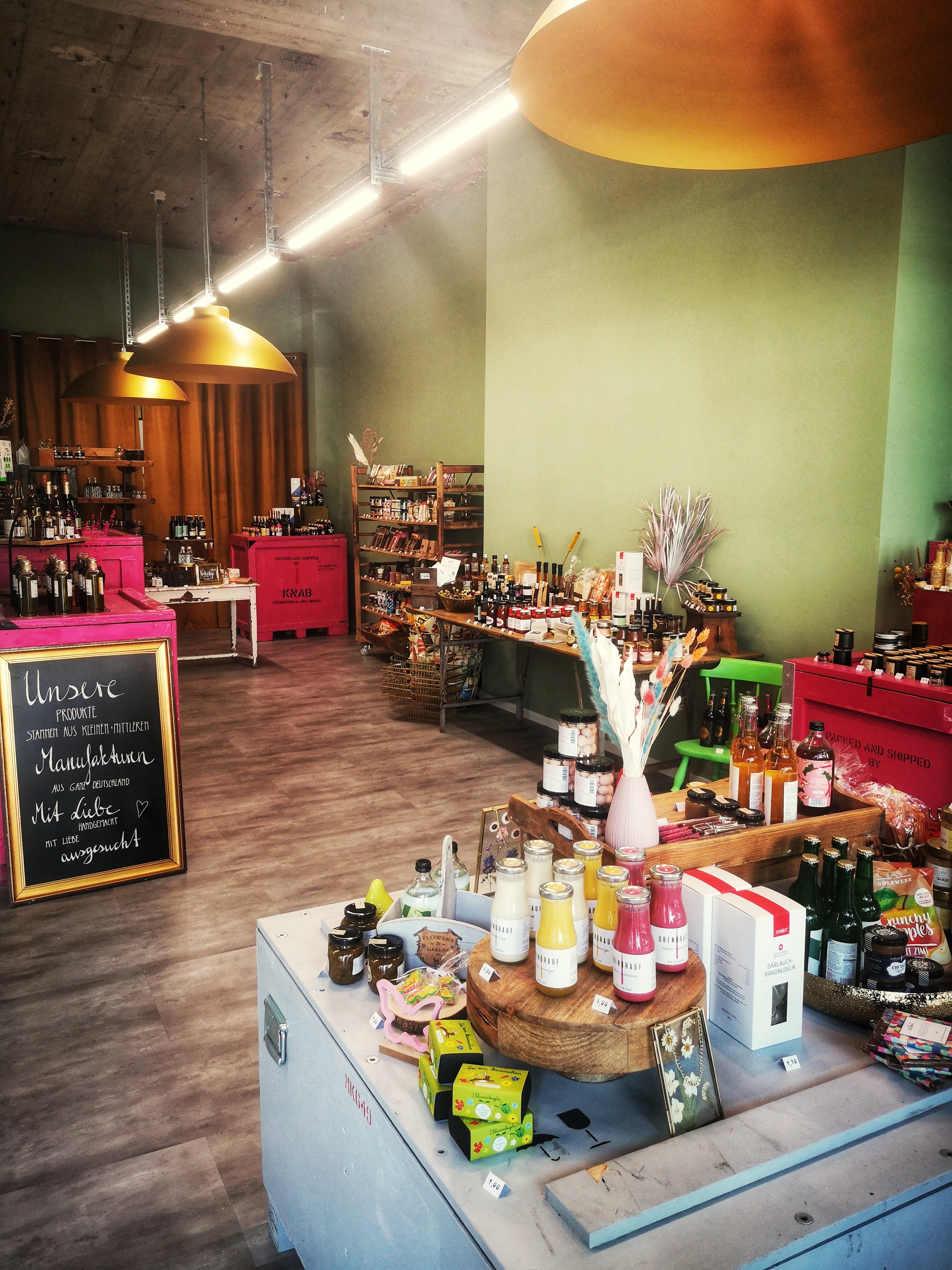In unserem Laden am Karolingerring findest Du handverlesene Feinkost, besondere Getränke und liebevolle Geschenkideen zum Mitnehmen. Neben Delikatessen aus kleinen deutschen Manufakturen gibt es bei uns auch Postkarten, Küchenaccessoires und kleine Mitbringsel für Foodies.V