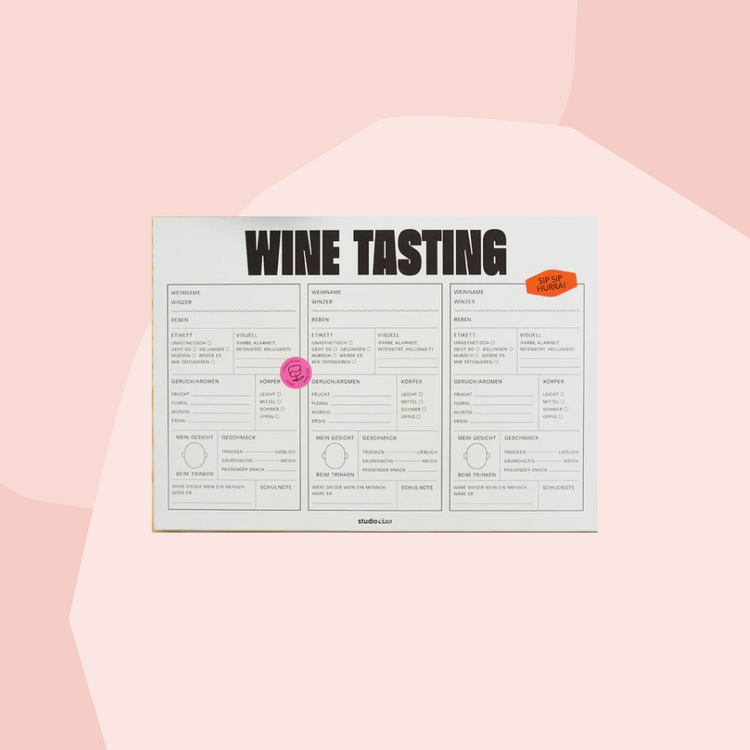 Dieser Block für die Weinprobe umfasst 50 Seiten. Da gehen also viiiiiiiiiieleeeeee Weinabende drauf.