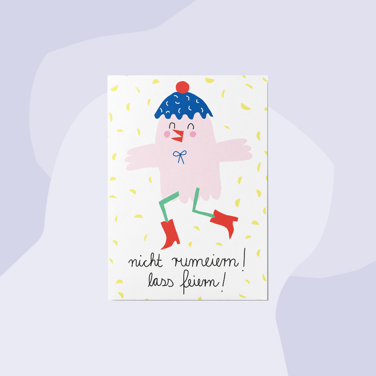 Postkarte zu Ostern: Partyküken - Nicht rumeiern, lass feiern.